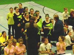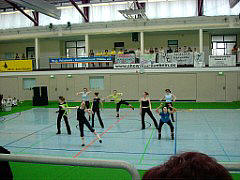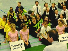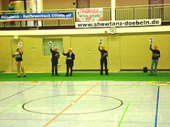 Um 15.30 Uhr begann nun endlich auch für die Oberliga-Mannschaften das Turnier mit der Vorrunde. Nach dem alle Formationen ihren Tanz gezeigt hatten, kam es zur ersten, noch verdeckten Wertung der Kampfrichter. Großer Jubel brach aus, nach dem bekannt gegeben wurde, das es ein kleines und ein großes Finale geben würde und unsere Formation im großen Finale tanzen würde. Noch einmal hieß, alles geben im Kampf um die Plätze 1-5! |